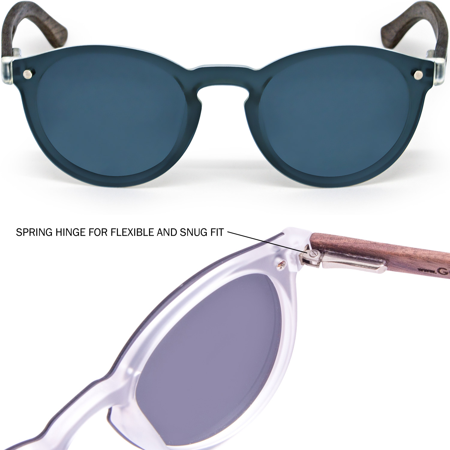 Published October 21, 2021 at 1500 × 1500 in Round walnut wood sunglasses with special one piece polarized dark grey lens