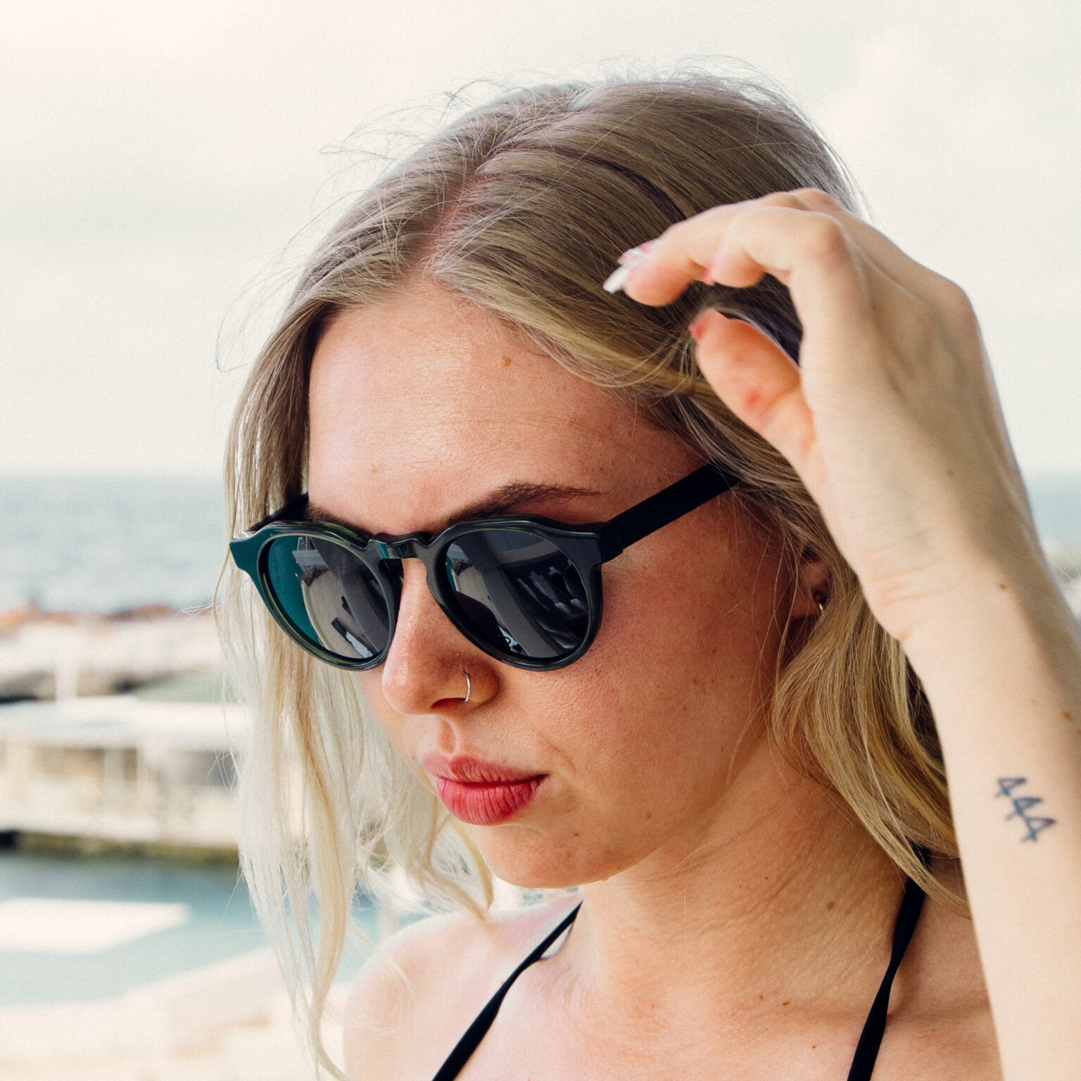 Panto round sunglasses with green transparent frame and ebony wooden temples. Published June 11, 2025 at 2500 × 2500 in Ebony wood panto sunglasses with crystal green frame and black polarized lenses ← Previous Next →