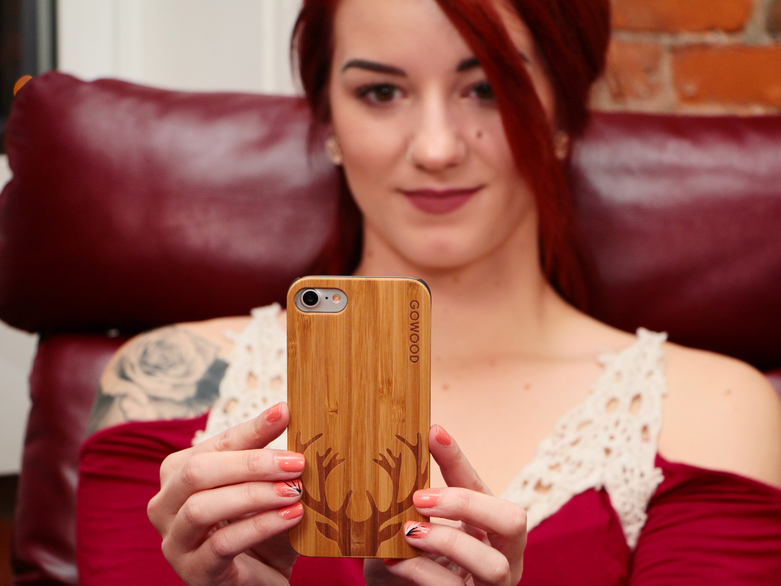 iPhone 6 Plus hoesje van bamboe hout met hert gravering