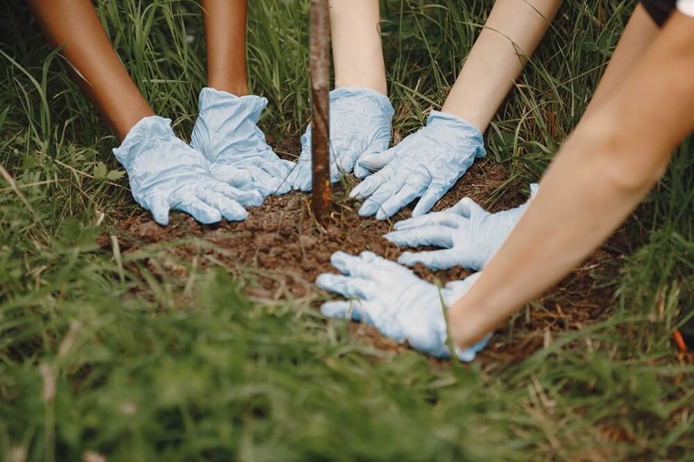 three-volunteers-planting-a-tree-to-reduce-carbon-footprint