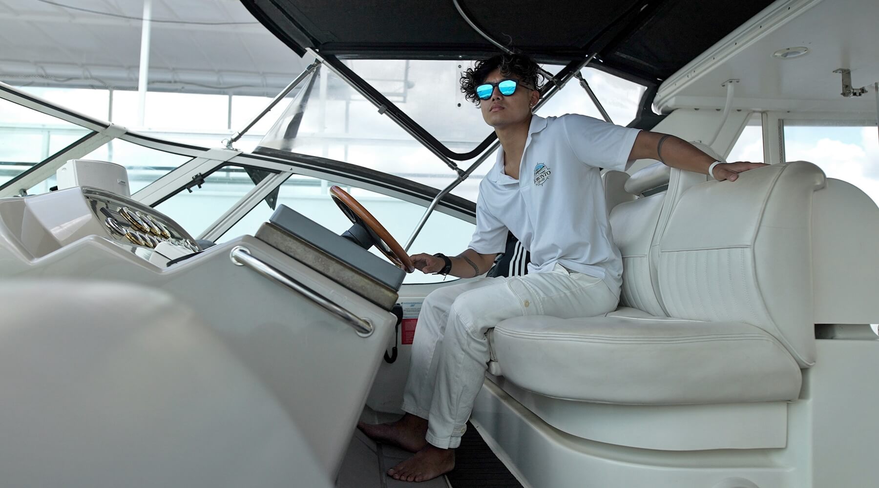A young male model, sporting stylish GOWOOD wooden sunglasses, relaxes on a luxurious yacht Published June 1, 2024 at 1800 × 1000 in Explore the GOWOOD Wood Sunglasses Collection Next →