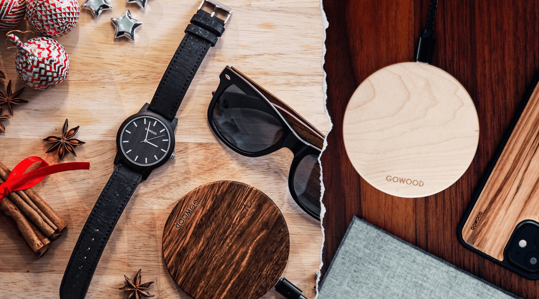 A festive arrangement of wooden accessories, including a GOWOOD wooden wireless charger and a watch, sunglasses, perfect for Christmas gifting Published December 9, 2024 at 1800 × 1000 in Why GOWOOD Wireless Chargers Are Perfect for Christmas Next →