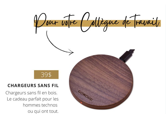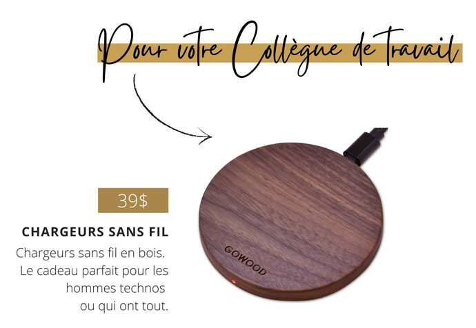 Ne cherchez plus! Nous avons ce qu’il vous faut avec ce magnifique chargeur sans fil en bois. Ce cadeau est idéal autant pour les hommes que les femmes. Tout le monde aime la commodité de charger son téléphone sans fil et il agrémente parfaitement n’importe quel bureau ou table de chevet.