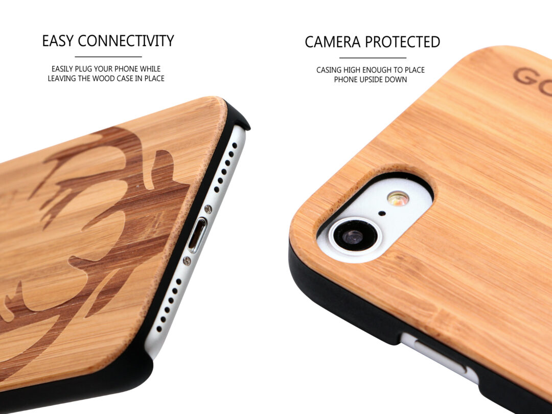 Caractéristiques de l’étui iPhone 7 et 8 en bois de Go Wood: