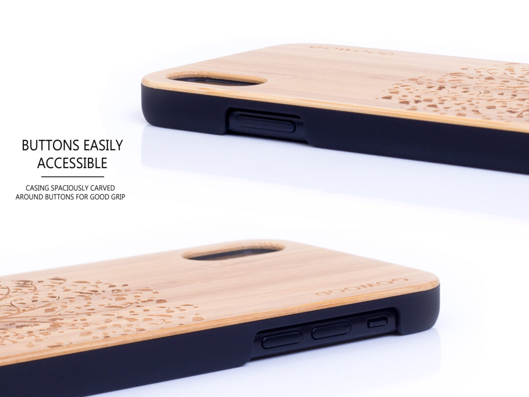 - LOOK NATUREL ET TENDANCE – Tout le monde aime l’apparence et la chaleur naturel des produits en bois. Lorsque vous opter pour un étui de téléphone en bois, vous choississez un produit réellement unique. Chaque étui est différent, puisque les grains du bois ne sont jamais les mêmes. Votre téléphone aura fière allure avec cet étui iPhone X/XS en bois et nous sommes certains que vous l’adorez et que plusieurs vous demanderont où vous l’avez acheté! Vous êtes actuellement en train de regarder l’étui en bois pour iPhone X/XS en bambou naturel avec une magnifique gravure d’un arbre.