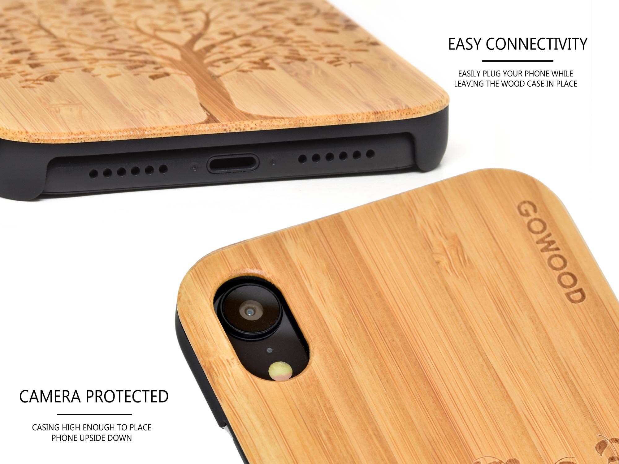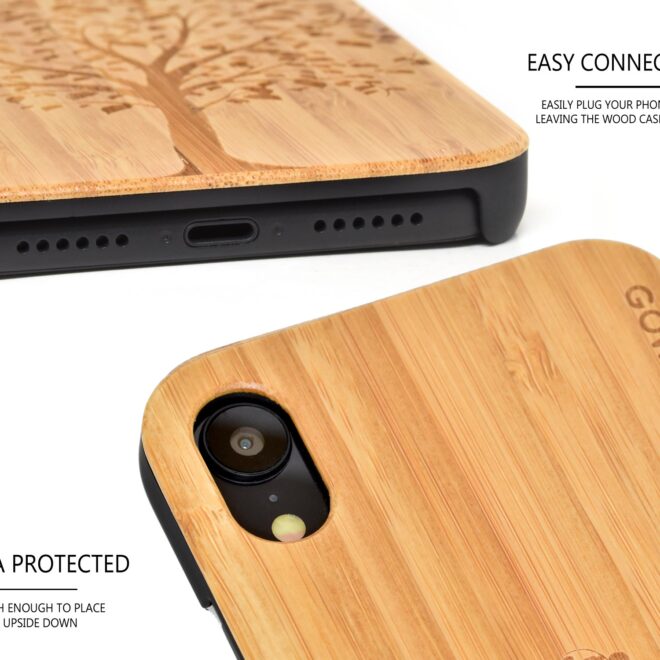 - LOOK NATUREL ET TENDANCE – Tout le monde aime l’apparence et la chaleur naturel des produits en bois. Lorsque vous opter pour un étui de téléphone en bois, vous choississez un produit réellement unique. Chaque étui est différent, puisque les grains du bois ne sont jamais les mêmes. Votre téléphone aura fière allure avec cet étui iPhone XR en bois et nous sommes certains que vous l’adorez et que plusieurs vous demanderont où vous l’avez acheté! Vous êtes actuellement en train de regarder l’étui en bois pour iPhone XR en bambou naturel avec une magnifique gravure d’un arbre.