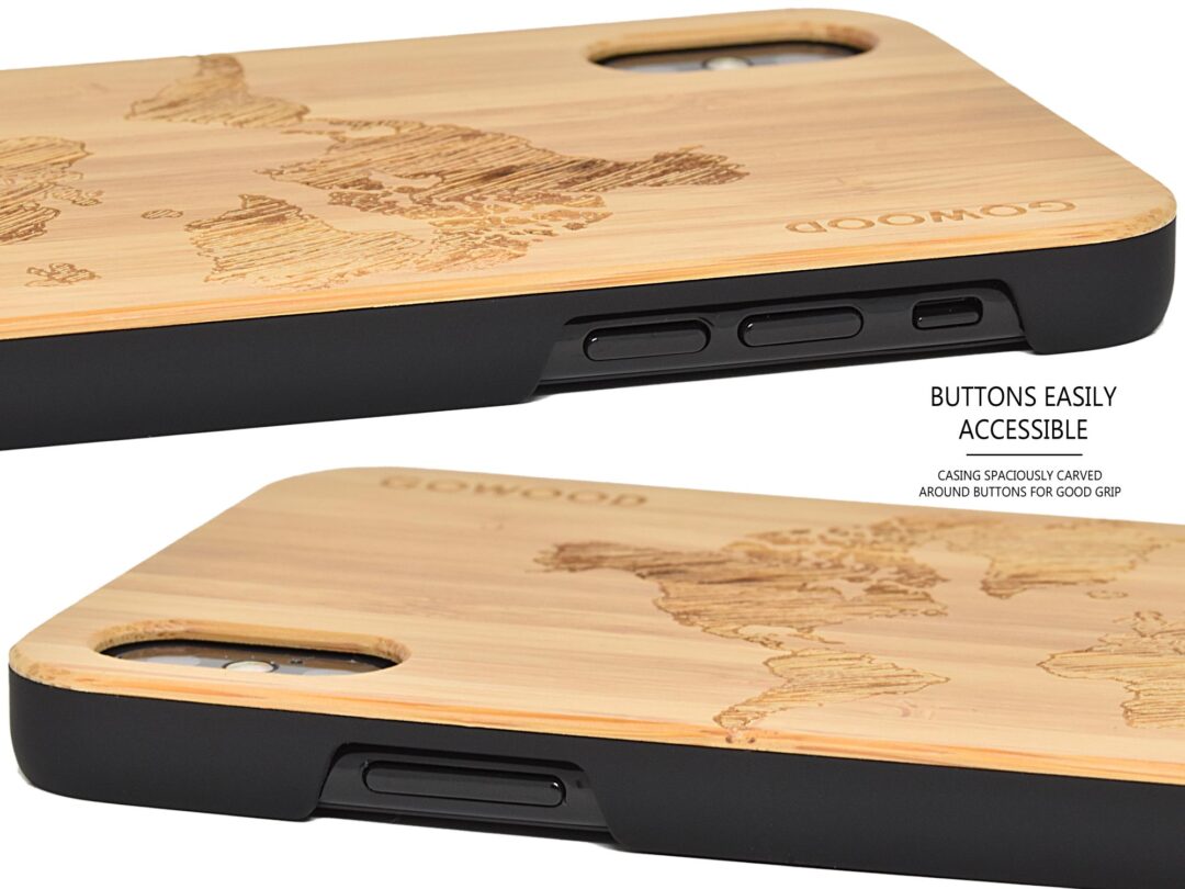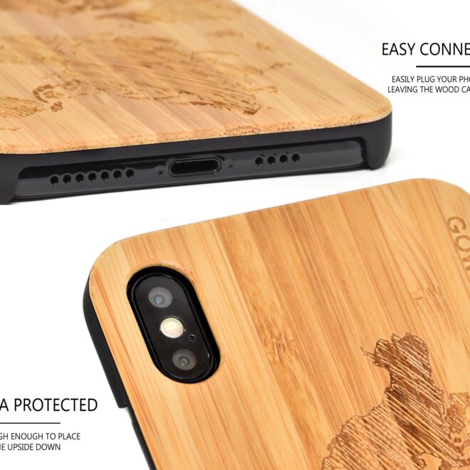 - LOOK NATUREL ET TENDANCE – Tout le monde aime l’apparence et la chaleur naturel des produits en bois. Lorsque vous opter pour un étui de téléphone en bois, vous choississez un produit réellement unique. Chaque étui est différent, puisque les grains du bois ne sont jamais les mêmes. Votre téléphone aura fière allure avec cet étui iPhone XS Max en bois et nous sommes certains que vous l’adorez et que plusieurs vous demanderont où vous l’avez acheté! Vous êtes actuellement en train de regarder l’étui en bois pour iPhone XS Max en bambou naturel avec une magnifique gravure de la carte du monde.
