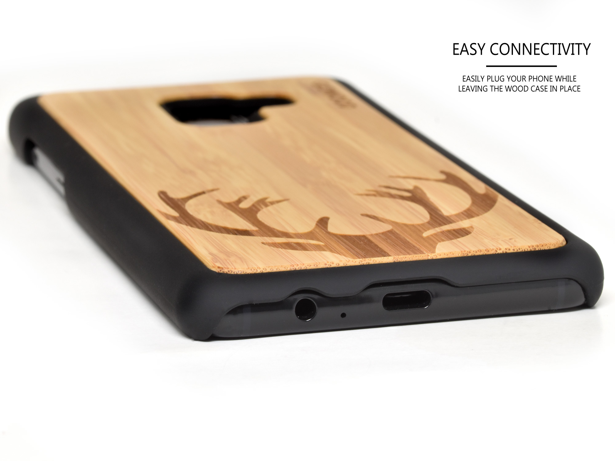 - Dos de l’étui entièrement fabriqué en bambou naturel et gravé d’un magnifique chevreuil