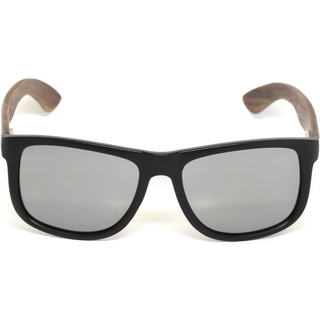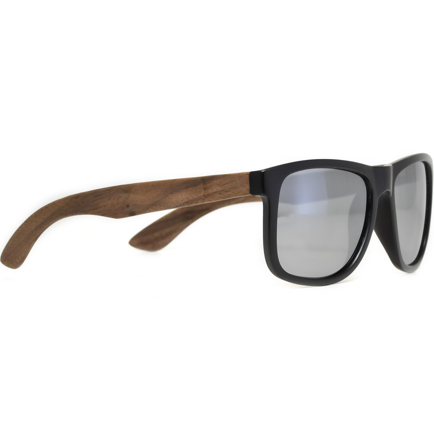 Lunettes de soleil carrées en bois de noyer avec verres miroir argent polarisés