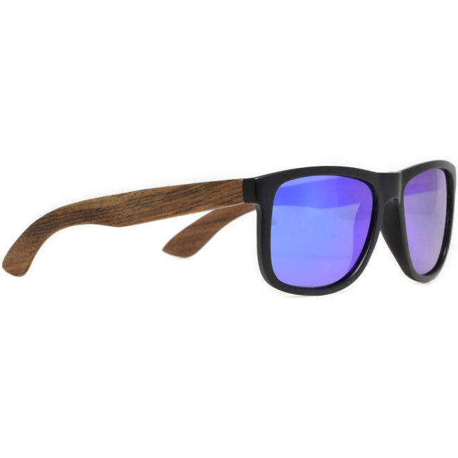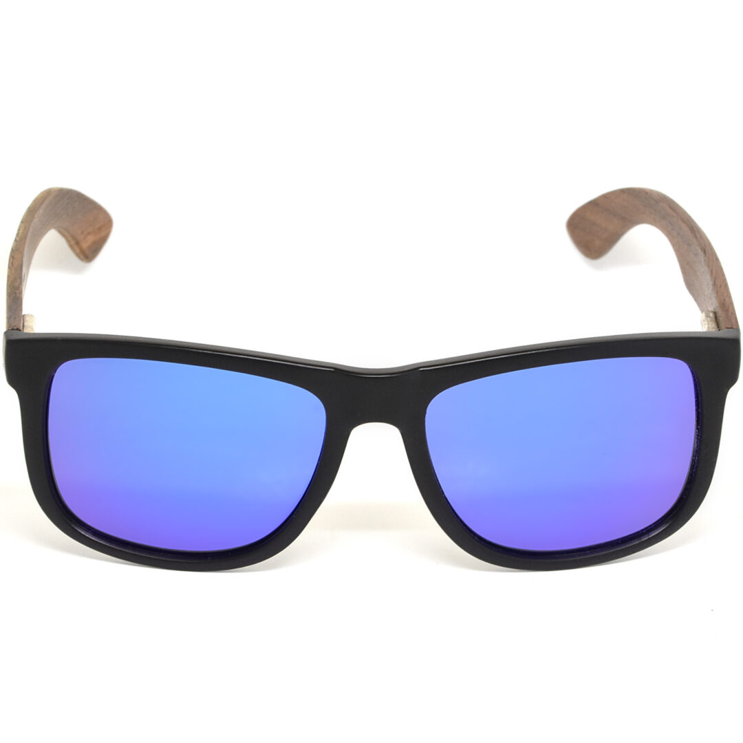 Lunettes de soleil carrées en bois de noyer avec verres miroir bleu polarisés