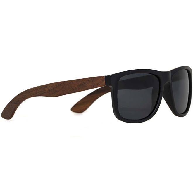 Lunettes de soleil carrées en bois de noyer avec verres noir / gris foncé polarisés