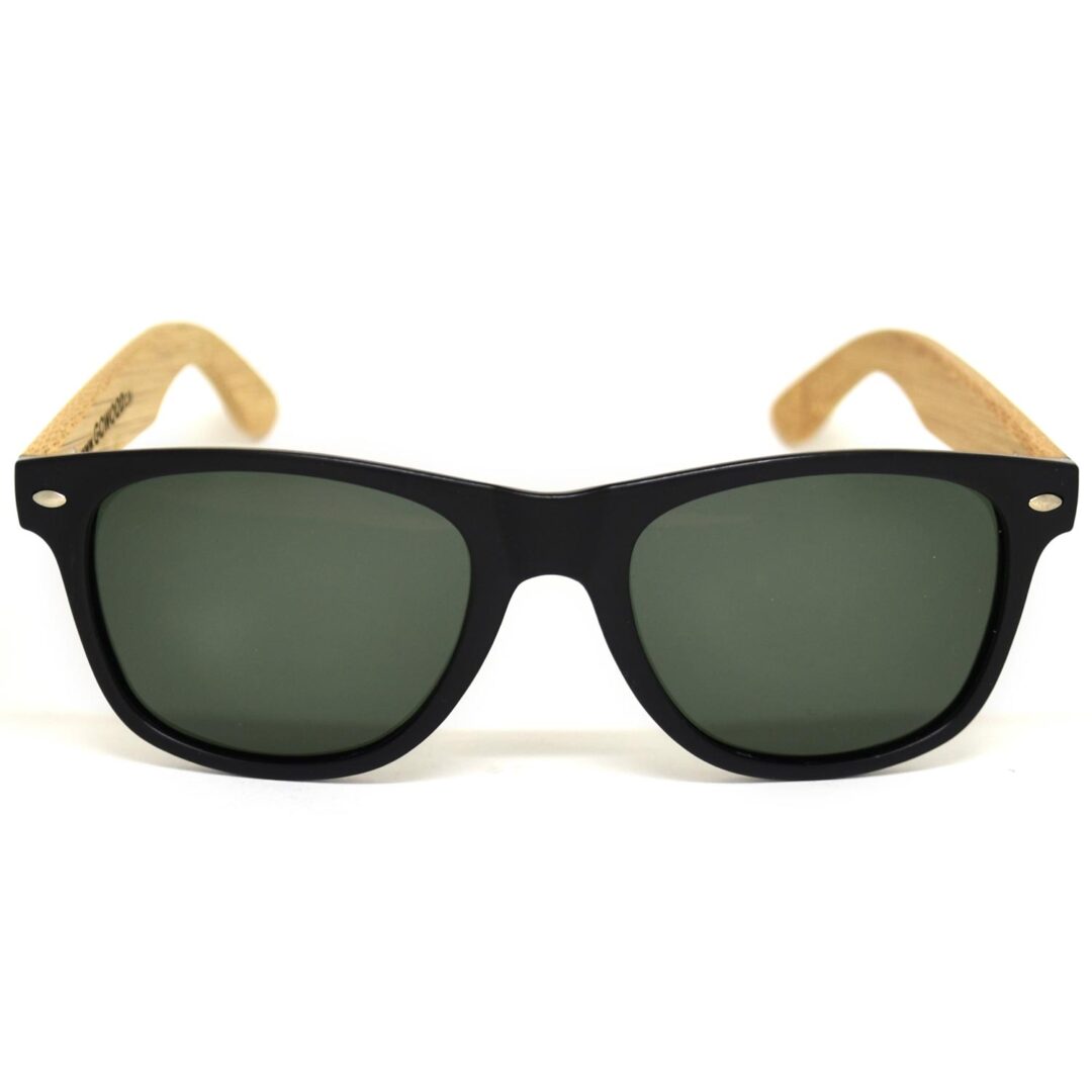 Lunettes de soleil en bois de bambou de style classique avec monture en acétate de couleur noir mat et verres noir polarisés