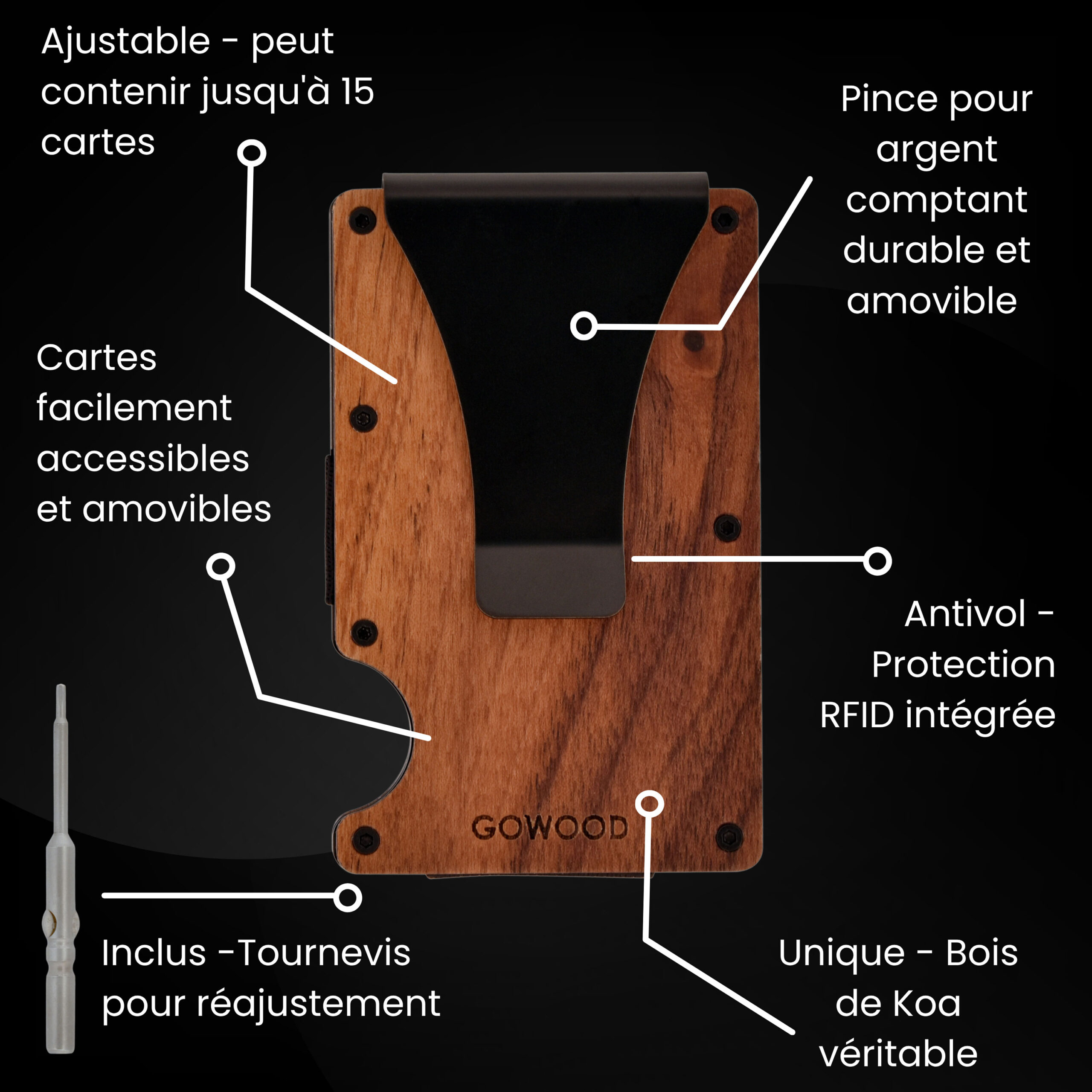 Portefeuille en bois de koa et porte-cartes compact avec protection RFID