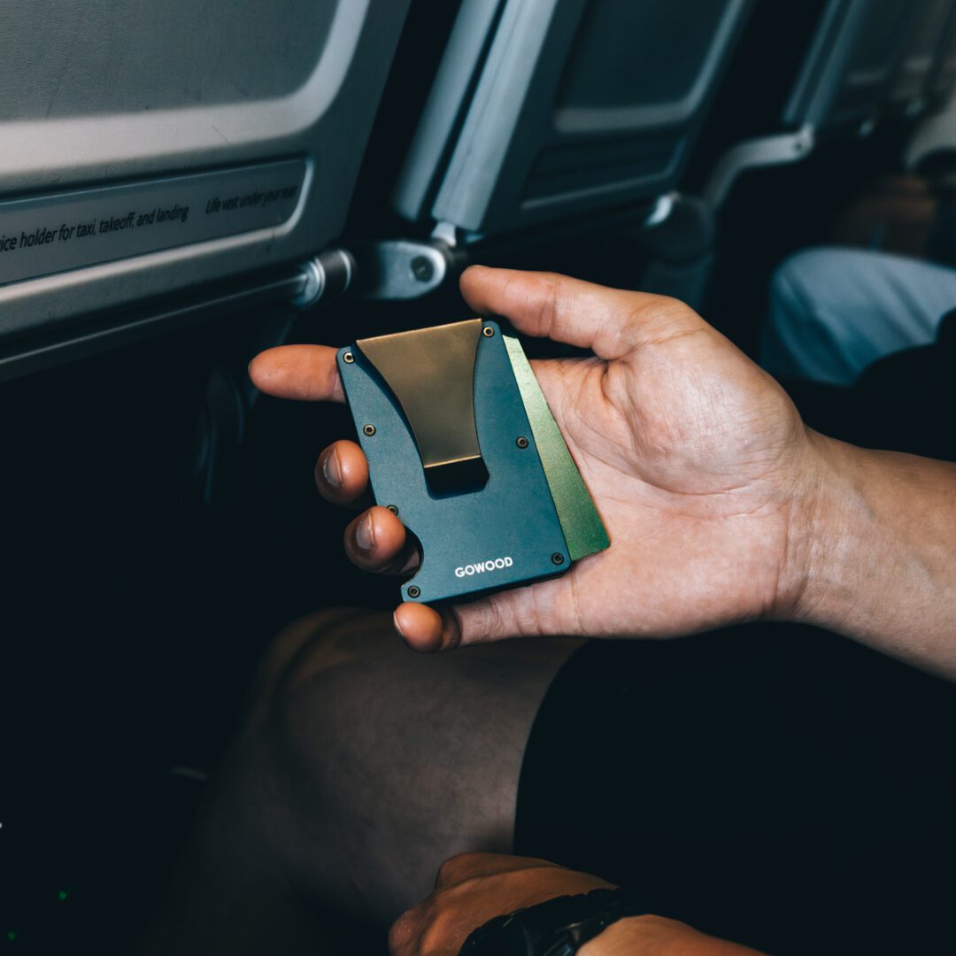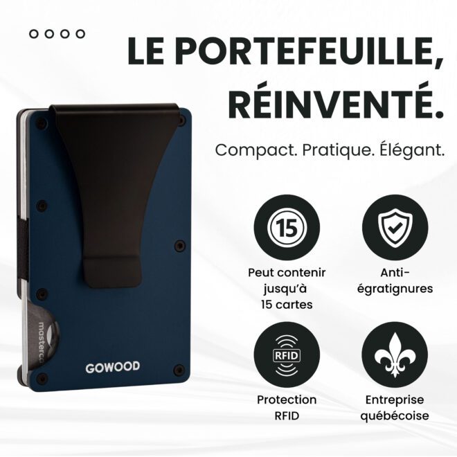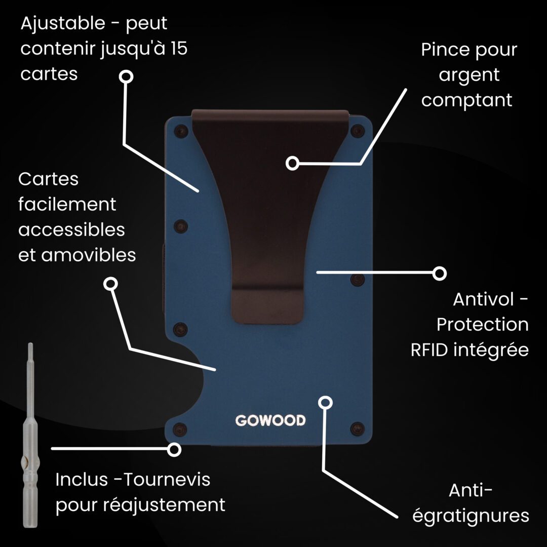 Portefeuille en métal bleu et porte-cartes compact