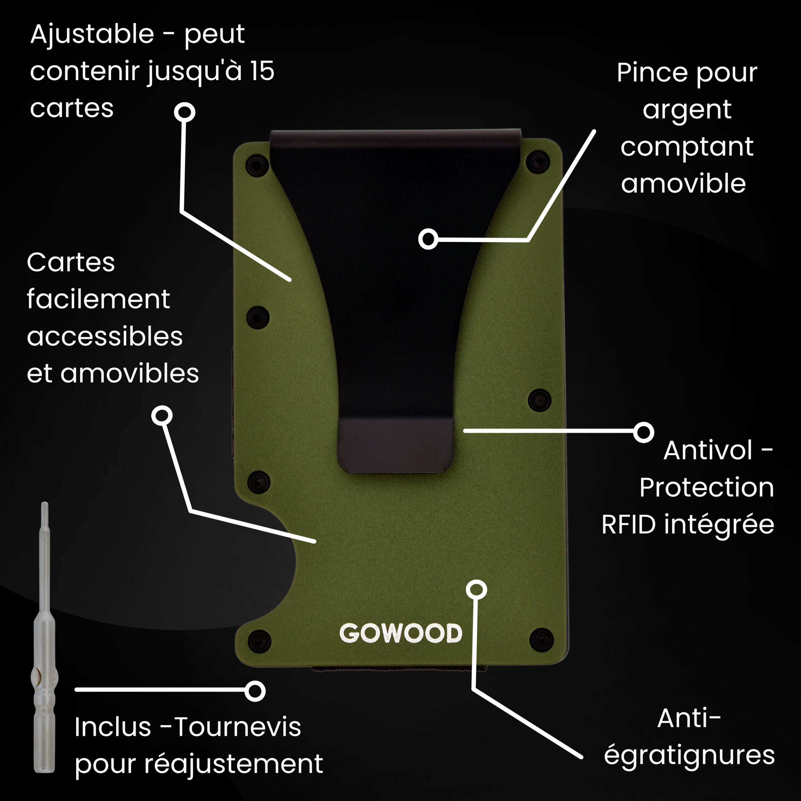 Tanné de votre portefeuille trop encombrant? Vous utilisez de moins en moins d’argent comptant? Passez dès aujourd’hui au portefeuille en métal vert et porte-cartes minimaliste de GOWOOD — vous ne reviendrez plus en arrière! Non seulement ce portefeuille est magnifique, mais c’est aussi un accessoire ultra-fonctionnel, autant pour les hommes que pour les femmes. Glissez-le dans votre poche ou dans votre sac, et profitez d’un portefeuille compact et léger!