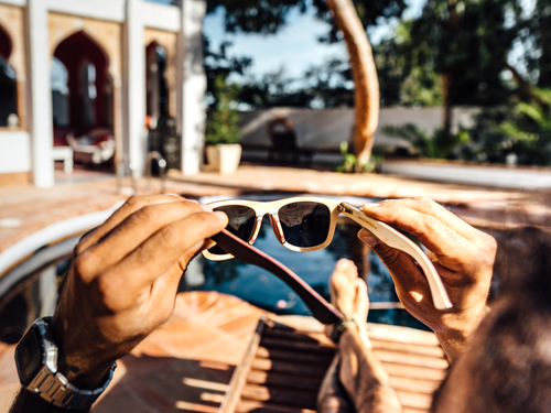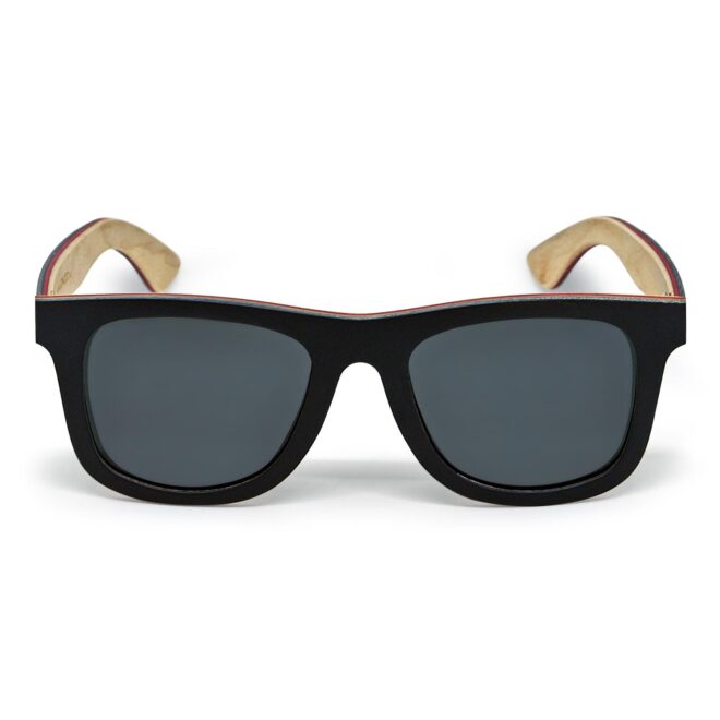 The design of our Canadian wood sunglasses Toulouse is in between the wayfarer style and the square style.