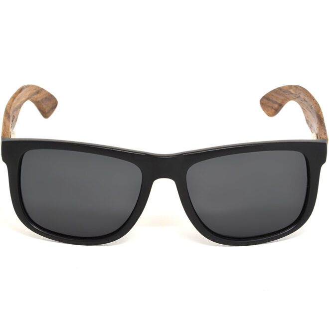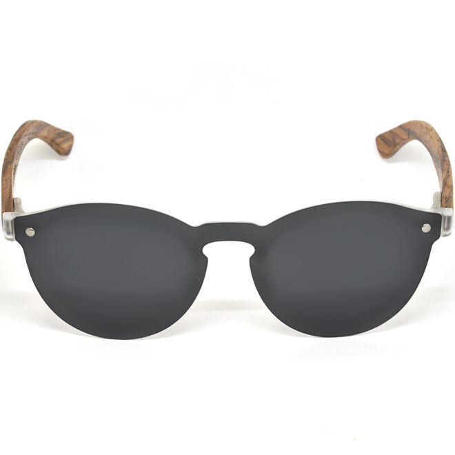 Round zebra wood sunglasses with special one piece polarized dark grey lens