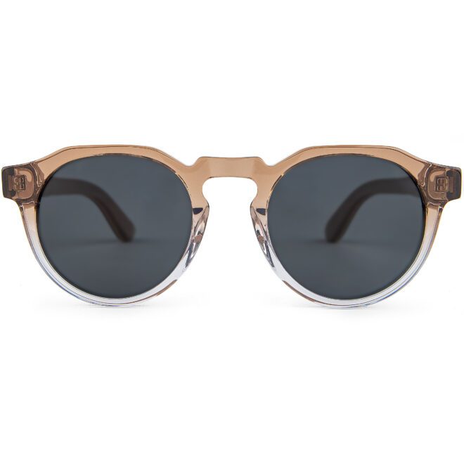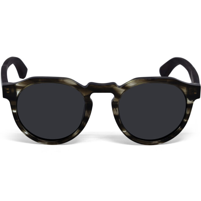 Round ebony wood sunglasses with special one piece polarized dark grey lens