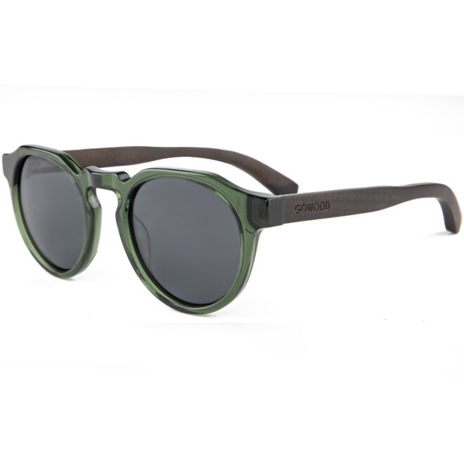 Walnut wood classic style sunglasses with green frame and black polarized lenses