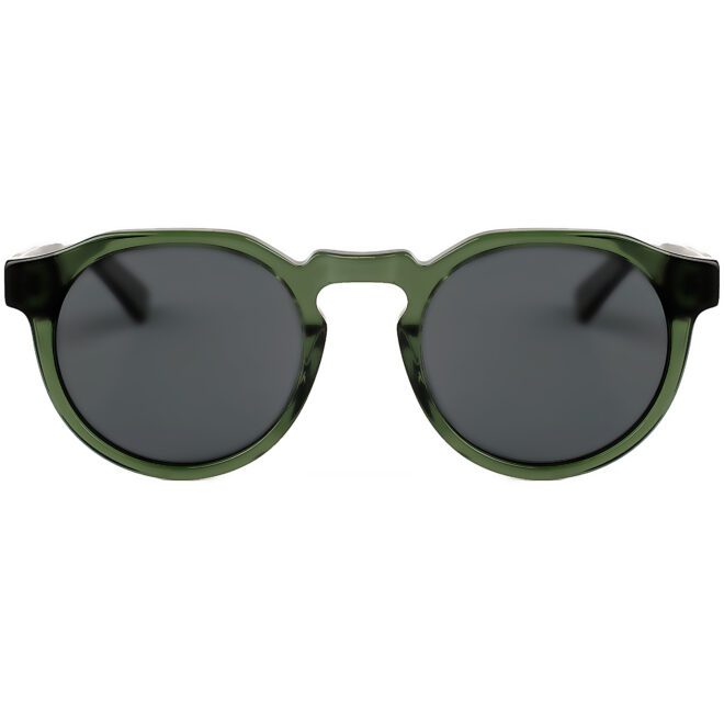 Ebony wood panto sunglasses with crystal green frame and black polarized lenses