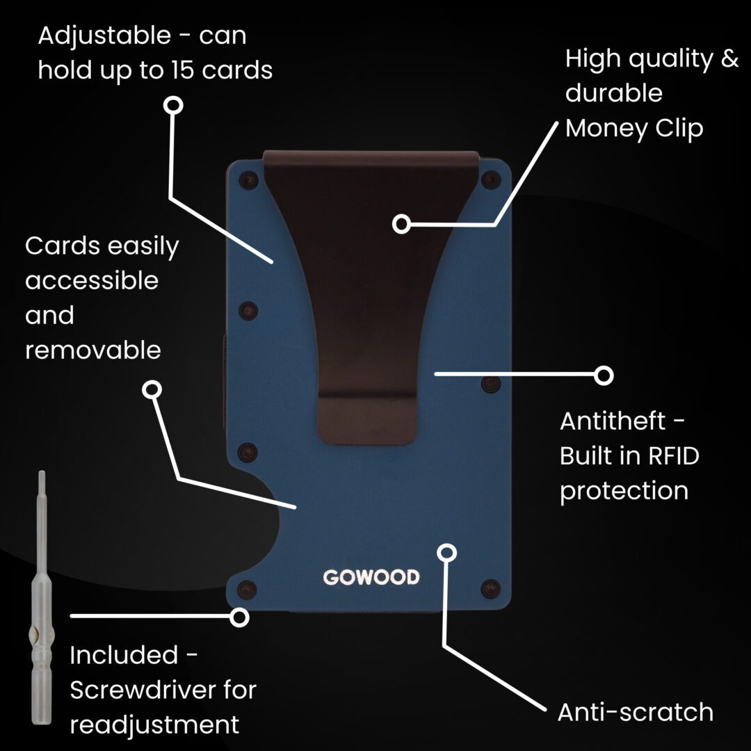 Getting tired of that bulky wallet? Using less and less cash? Switch today to the GOWOOD blue metal wallet / minimalist cardholder and never look back! This metal wallet is not only really beautiful, but a truly functional gadget for both men and women. Whether you stick it in your pocket or in your purse, you’ll be so happy you lost the bulk!