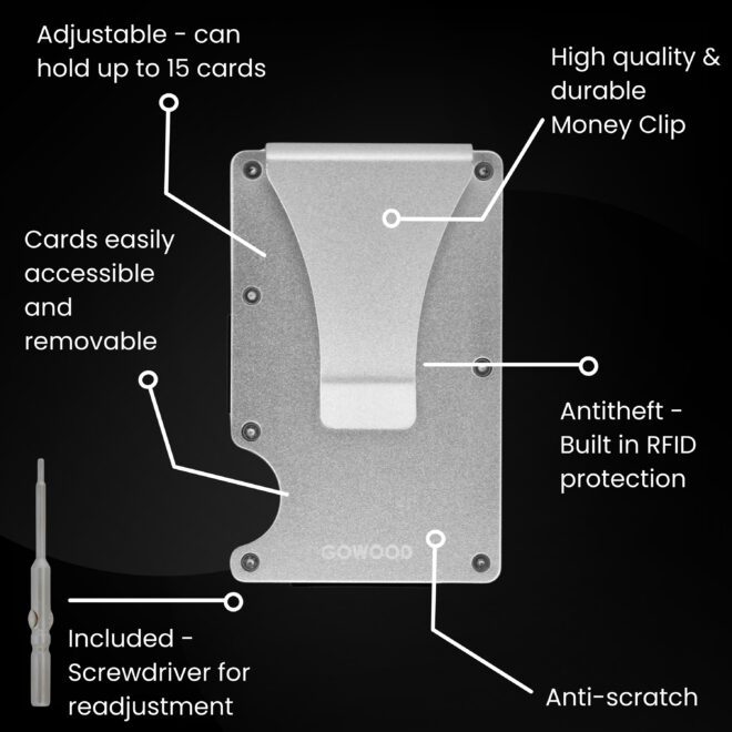 Getting tired of that bulky wallet? Using less and less cash? Switch today to the GOWOOD silver metal wallet / minimalist cardholder and never look back! This metal wallet is not only really beautiful, but a truly functional gadget for both men and women. Whether you stick it in your pocket or in your purse, you’ll be so happy you lost the bulk!