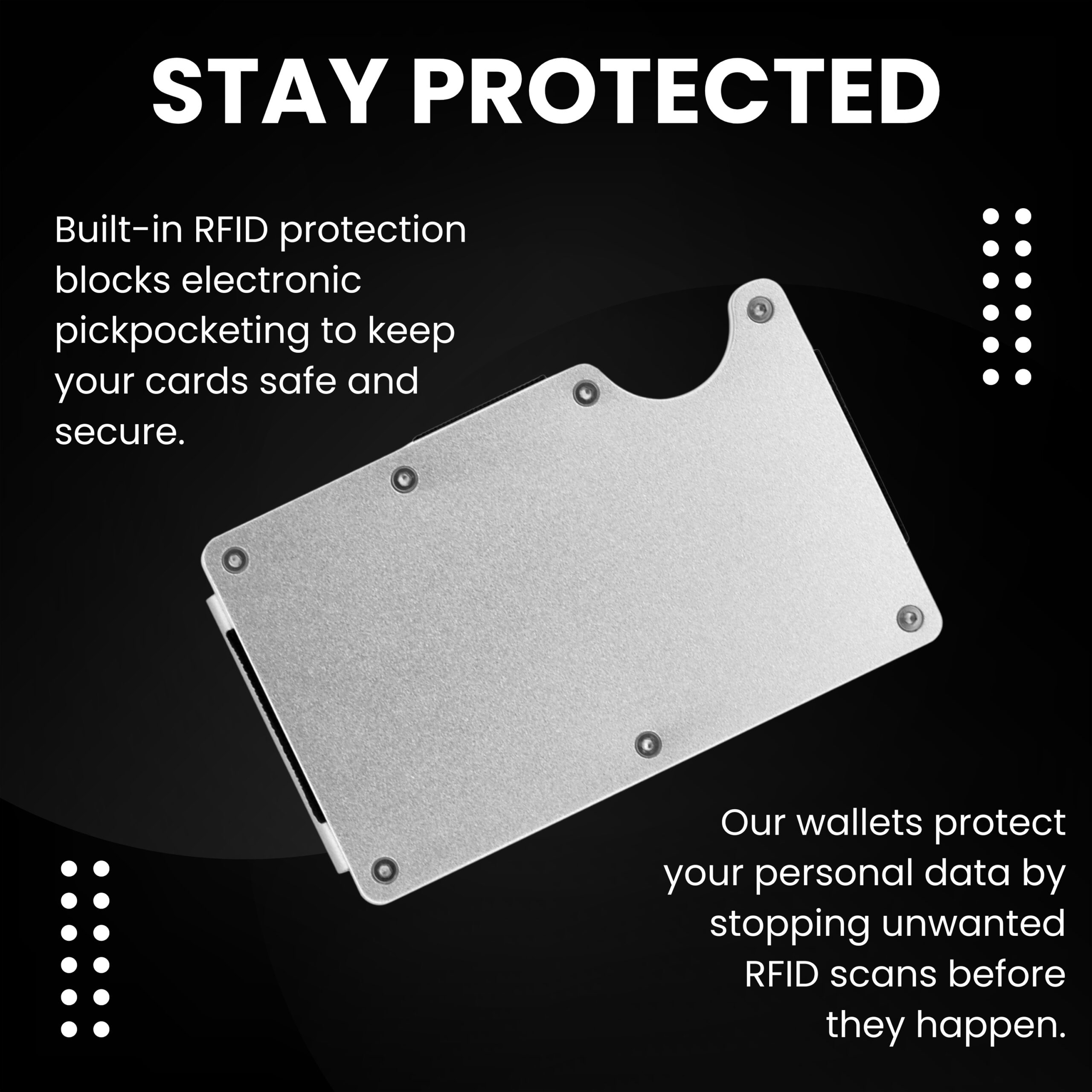 - Our wallets have RFID protection incorporated. Digital theft is automatically blocked! Stay safe in the subway, bus or train.