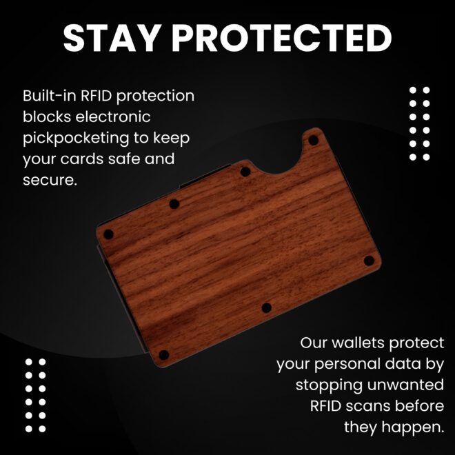 - Our wallets have RFID protection incorporated. Digital theft is automatically blocked! Stay safe in the subway, bus or train.
