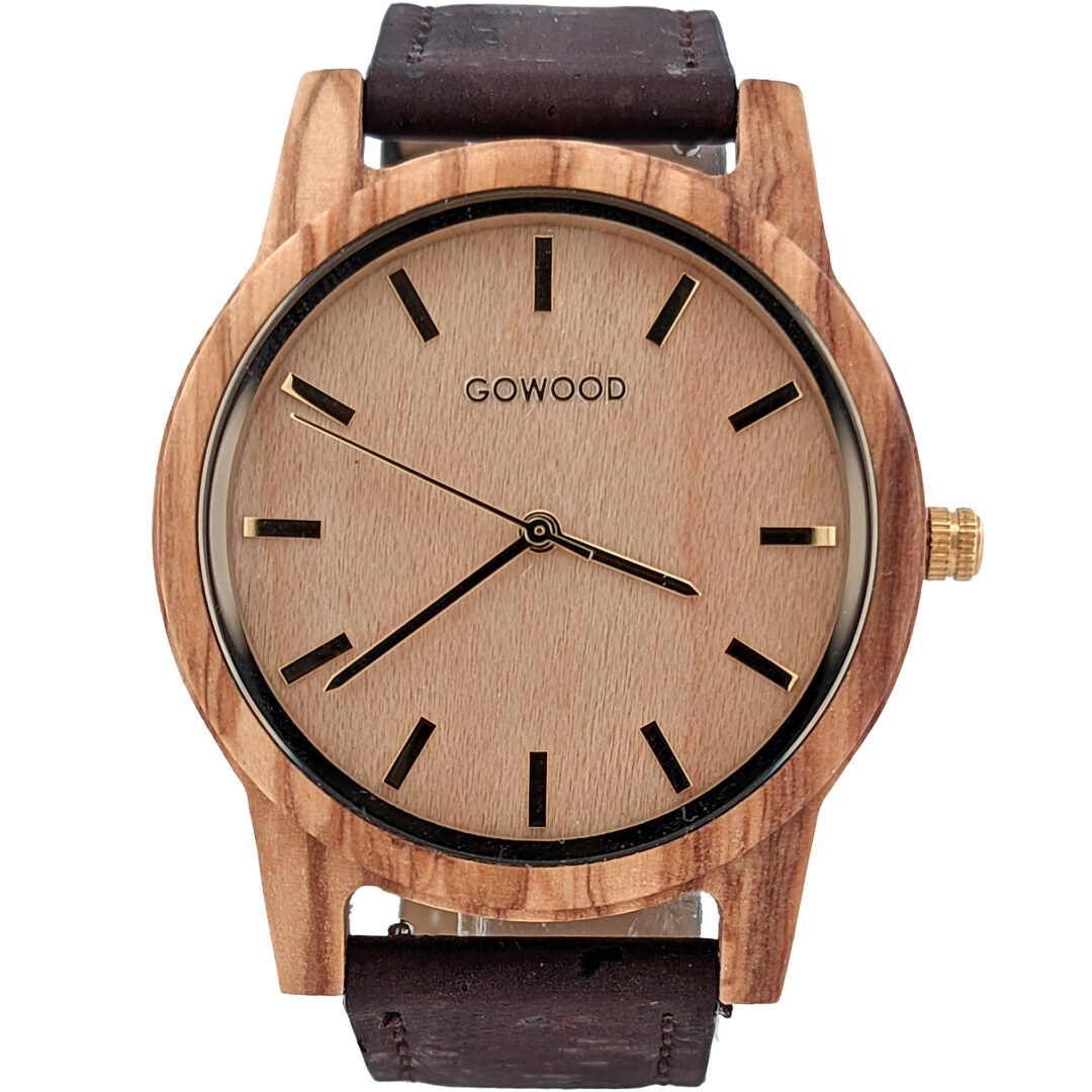 - This beautiful GOWOOD olive wood watch is equipped with a gold 3-hand (hour, minutes and seconds) real Swiss made movement for the best possible quality and accuracy in time indication. For more information regarding the movement, please check the specifications here.