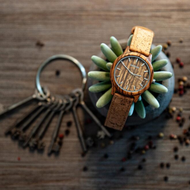 Zebra Wood Watch with Real Portuguese Natural Cork Wristband