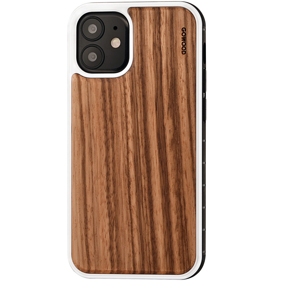 iPhone 12 Mini wood case with shock absorbing anti-slip TPU bumper, real zebra wood backside with white polycarbonate layer inside