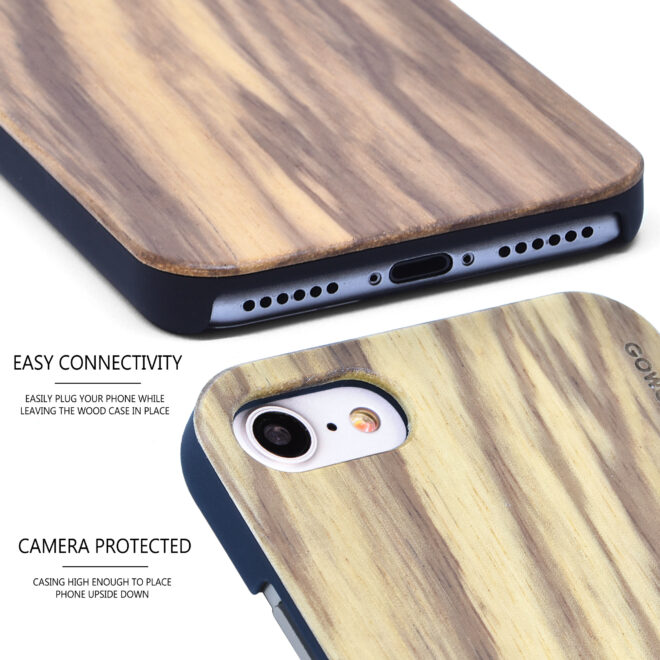 Protect and style your beautiful iPhone 7, 8 or SE (from 2020) with a GOWOOD zebra wood case. A unique combination of strong polycarbonate finished with a rubber coating and a real zebra wood backside.