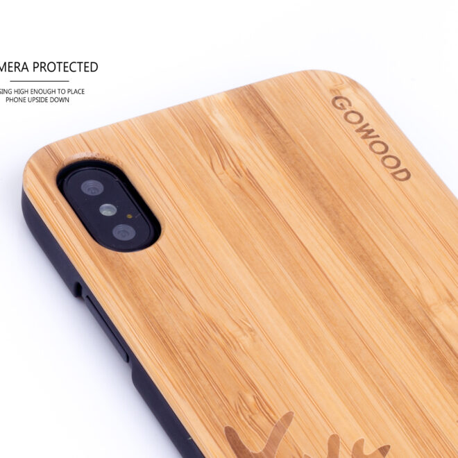 Protect and style your beautiful iPhone X or XS with a Go Wood iPhone X and XS wood case. A unique combination of strong polycarbonate finished with a rubber coating and a real bamboo backside.