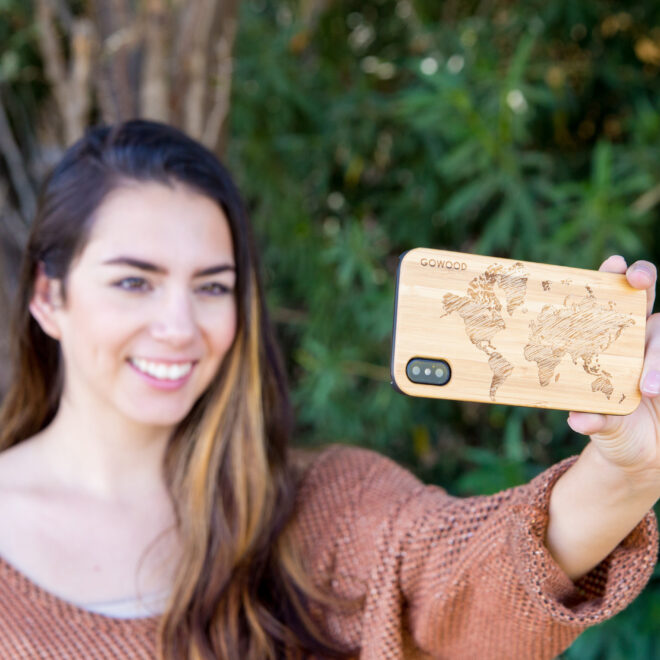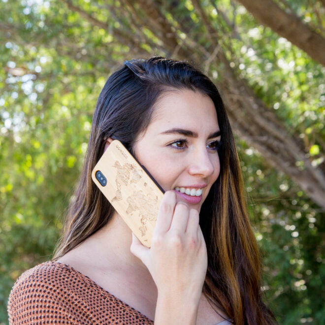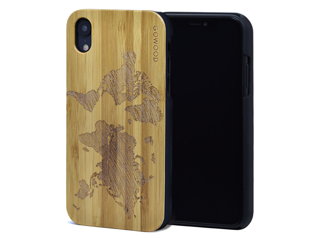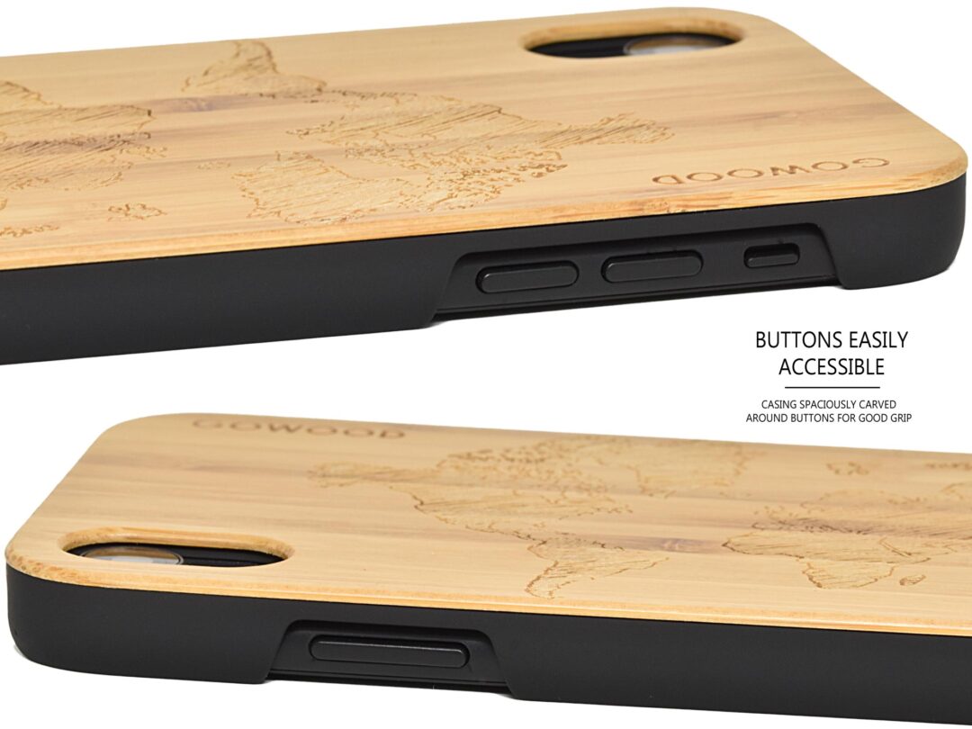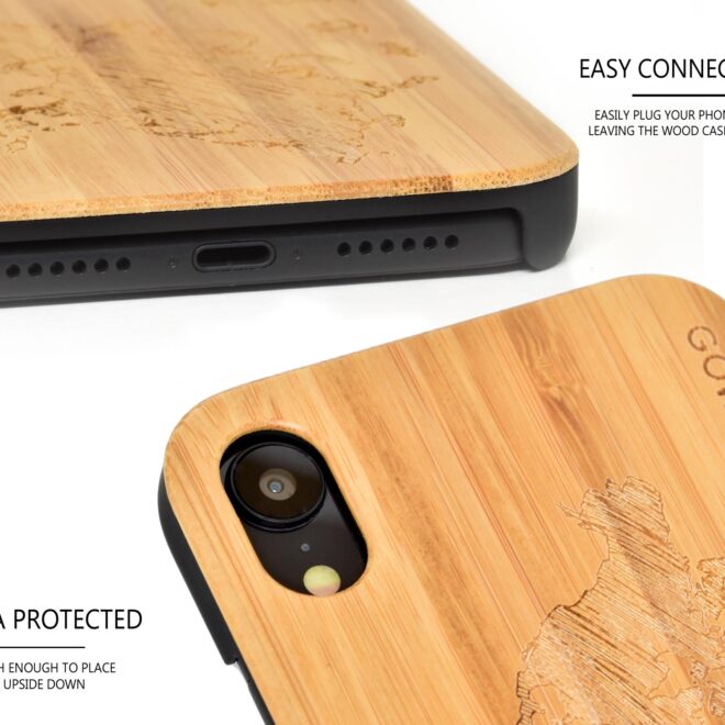iPhone XR wood case bamboo backside engraved world map polycarbonate sides