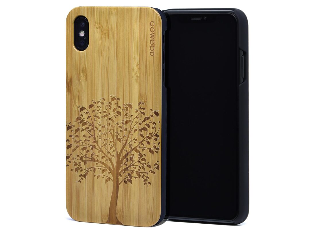 Protect and style your beautiful iPhone XS Max with a Go Wood iPhone XS Max wood case. A unique combination of strong polycarbonate finished with a rubber coating and a real bamboo backside.
