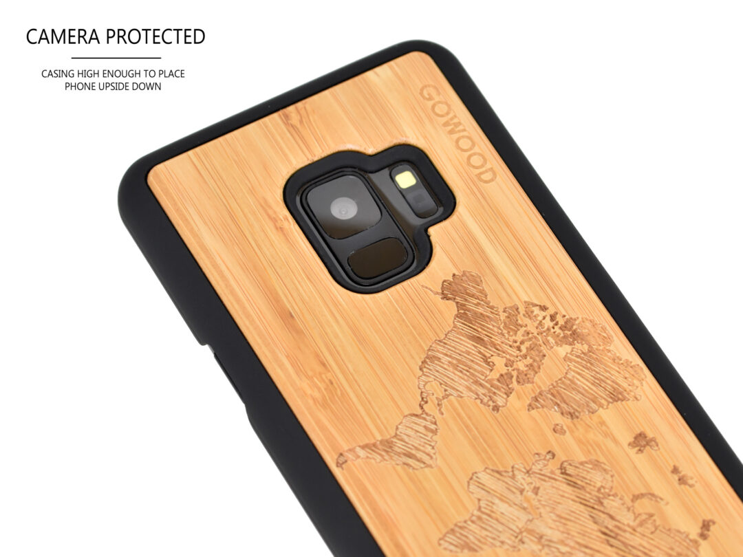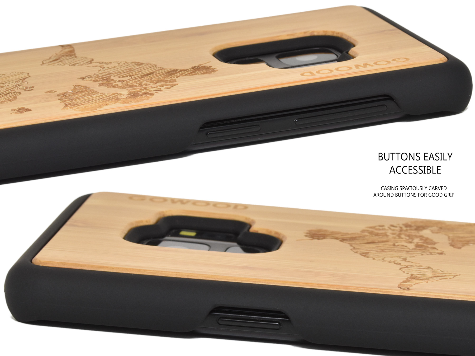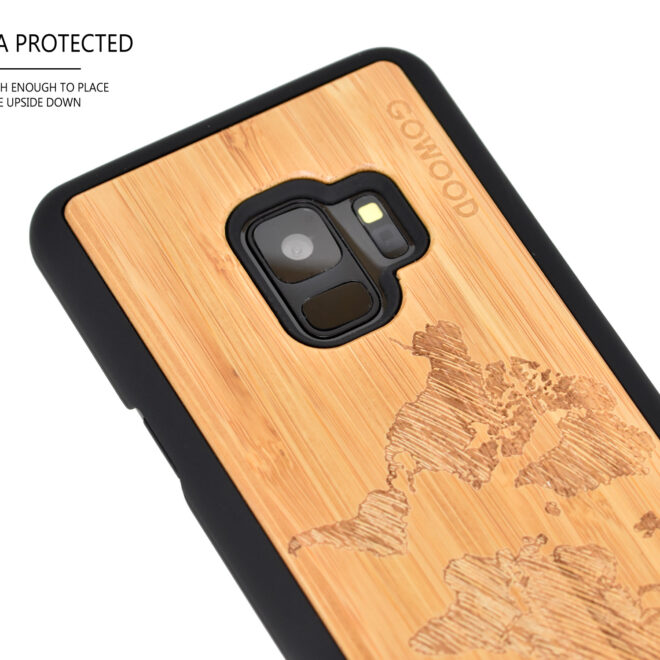 Samsung Galaxy S9 wood case with shock absorption polycarbonate sides and real natural bamboo backside