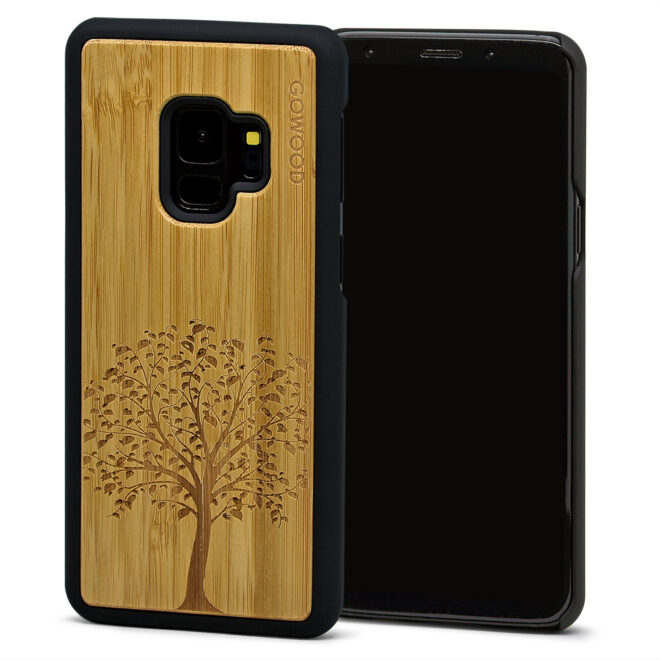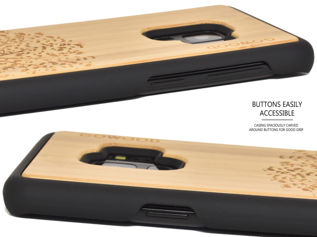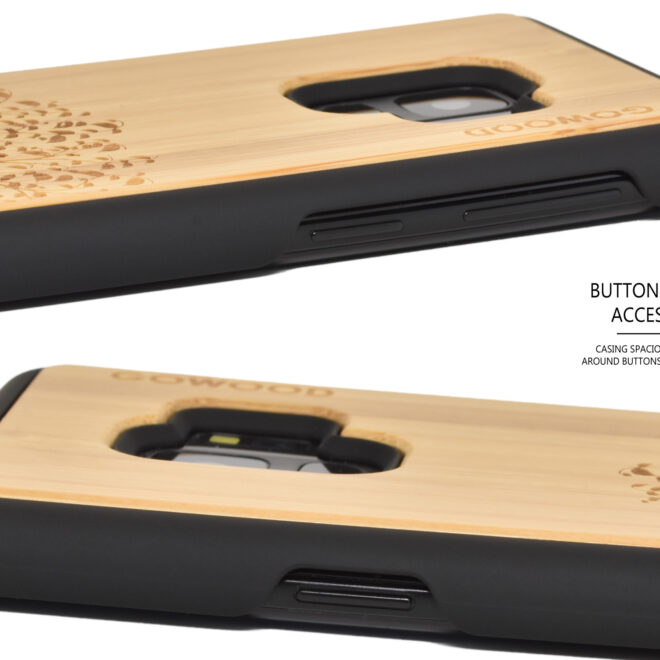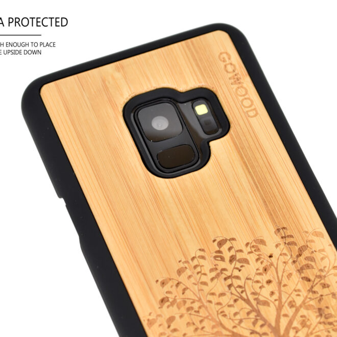 Samsung Galaxy S9 wood case with shock absorption polycarbonate sides and real natural bamboo backside