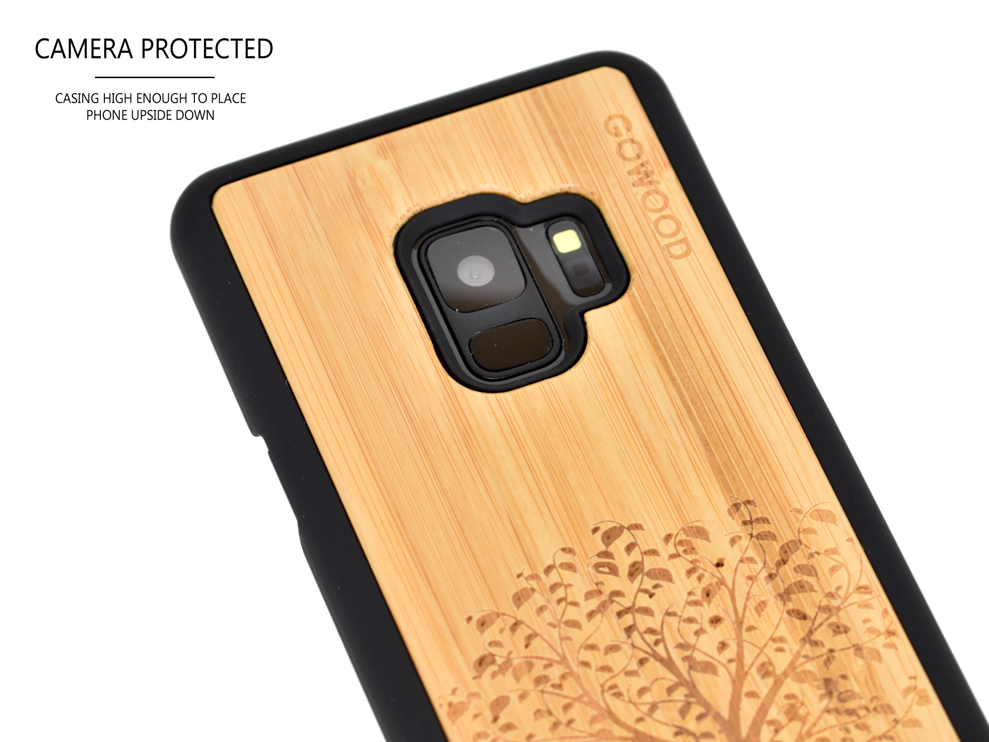 Protect and style your beautiful Samsung Galaxy S9 with a Go Wood Samsung Galaxy S9 wood case. A unique combination of strong polycarbonate finished with a rubber coating and a real bamboo backside.