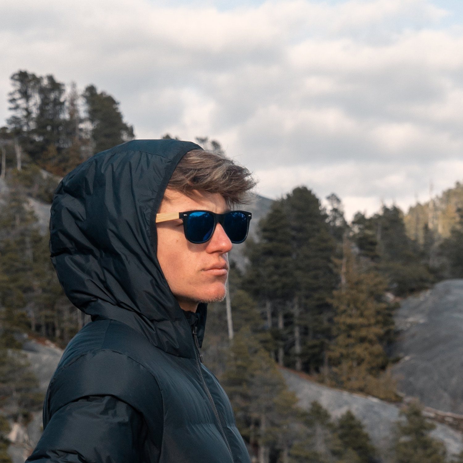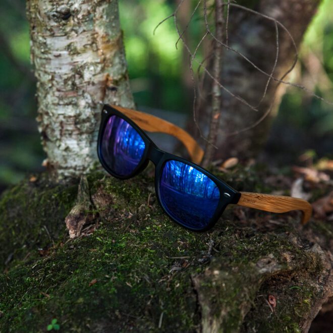 - Classic style looks good on everybody. Look at your best with these beautiful bamboo wood classic style sunglasses with blue lenses.