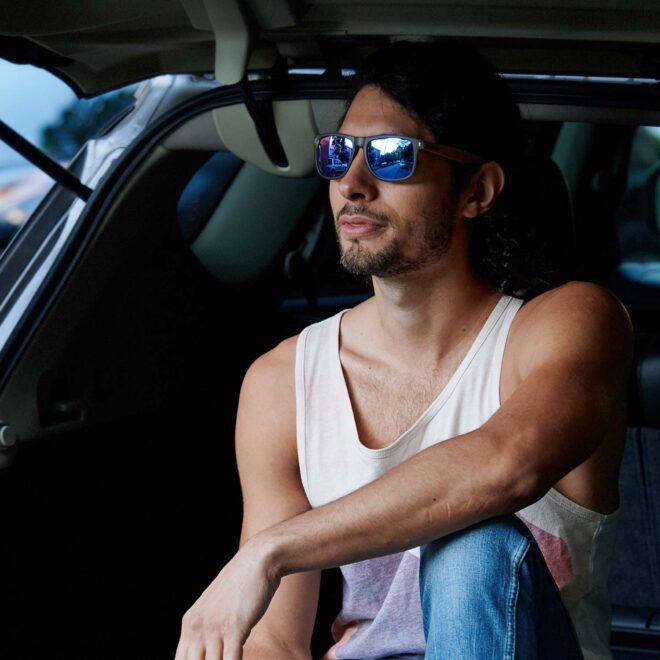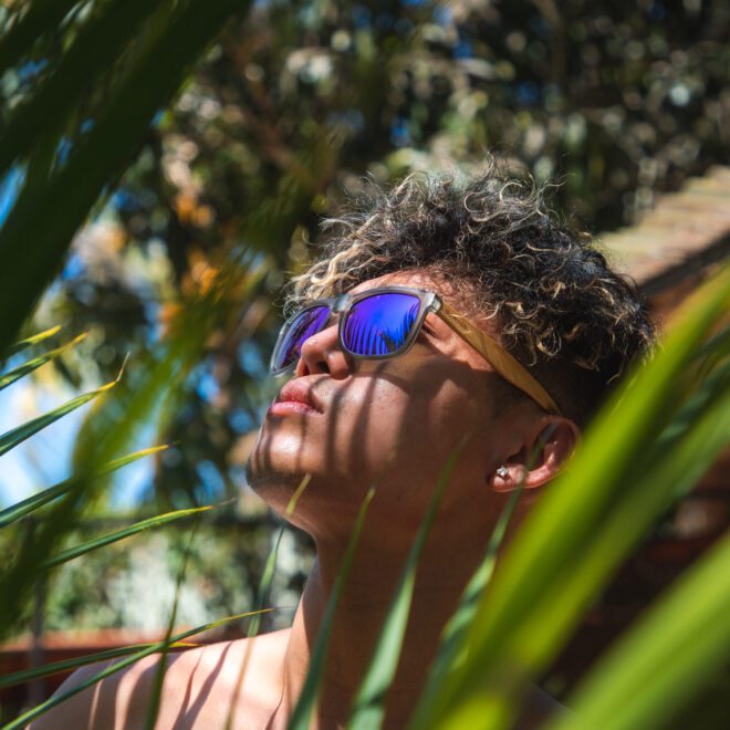 If you’re looking for something slightly different, you should definitely choose a pair out of the Sydney line. These bamboo wood sunglasses are more square/rectangular shaped compared to the wayfarer style, yet still have rounded corners.