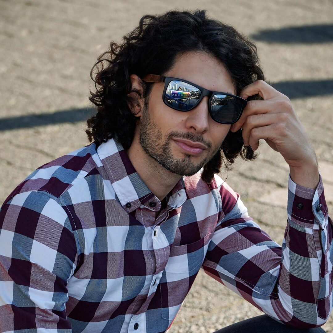 If you’re looking for something slightly different, you should definitely choose a pair out of the Sydney line. These ebony wood sunglasses are more square shaped compared to the wayfarer style, yet still have rounded corners.