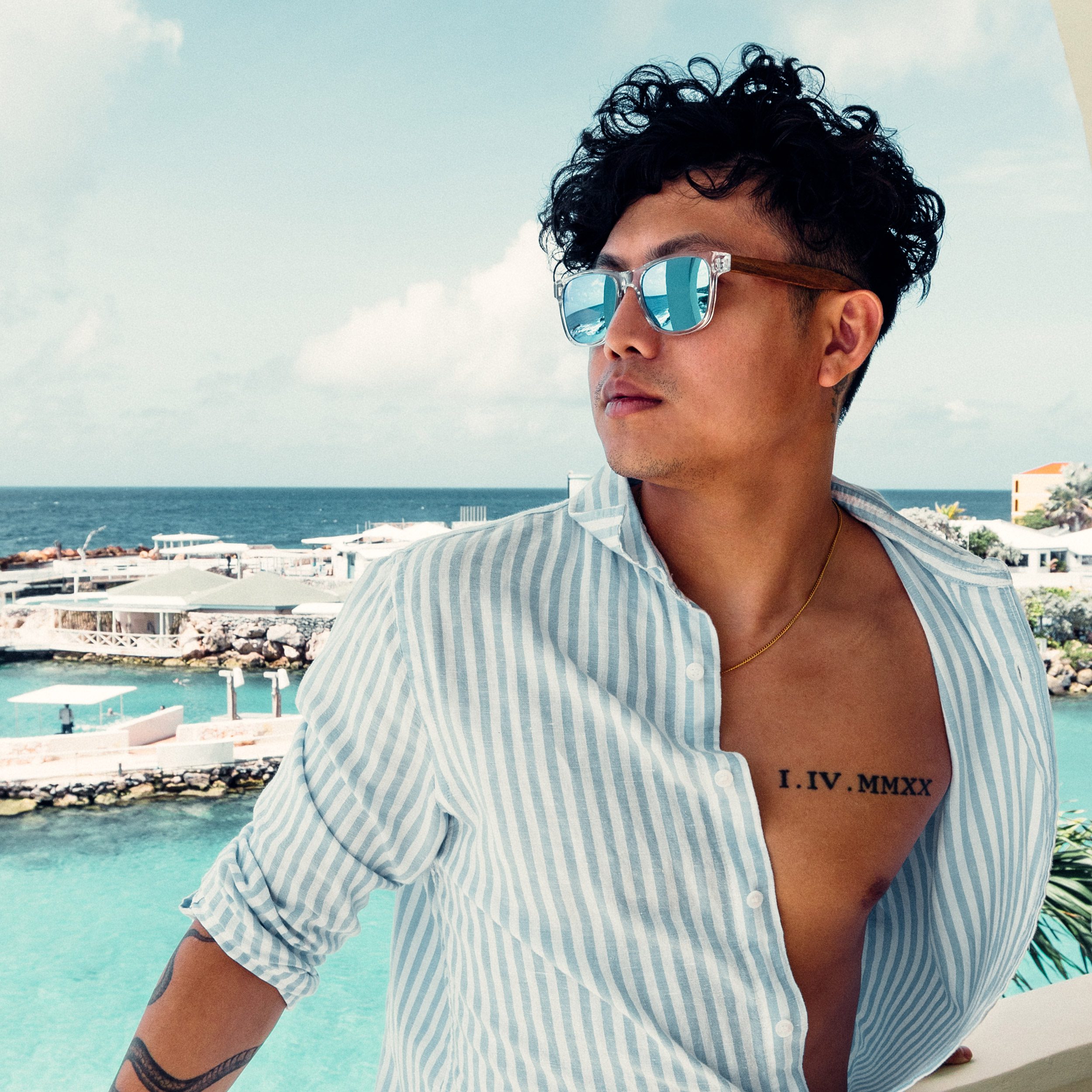 Make a bold and refreshing statement with our newest Los Angeles model: the walnut wood classic sunglasses with clear frame and blue mirrored lenses. Designed for both men and women, these sunglasses blend a timeless silhouette with vibrant, modern style. Perfect for standing out while staying protected. Finished with vibrant blue mirrored lenses, these sunglasses are a true eye-catcher.